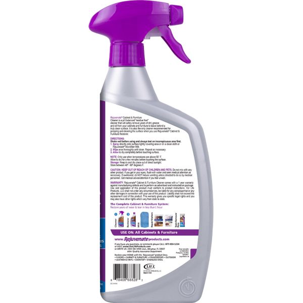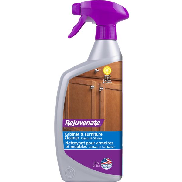 Le nettoyant pour armoires et meubles Rejuvenate® est la solution idéale pour nettoyer les armoires et les meubles en bois. Il nettoie en profondeur les portes d’armoires en bois, teintées ou peintes, et constitue une solution de nettoyage au pH équilibré, sans résidus, qui élimine des années d’huile, de graisse et de saleté. Le formica, le stratifié et les panneaux muraux font également partie des spécialités de ce nettoyant au parfum de citron, en plus du nettoyage des meubles.