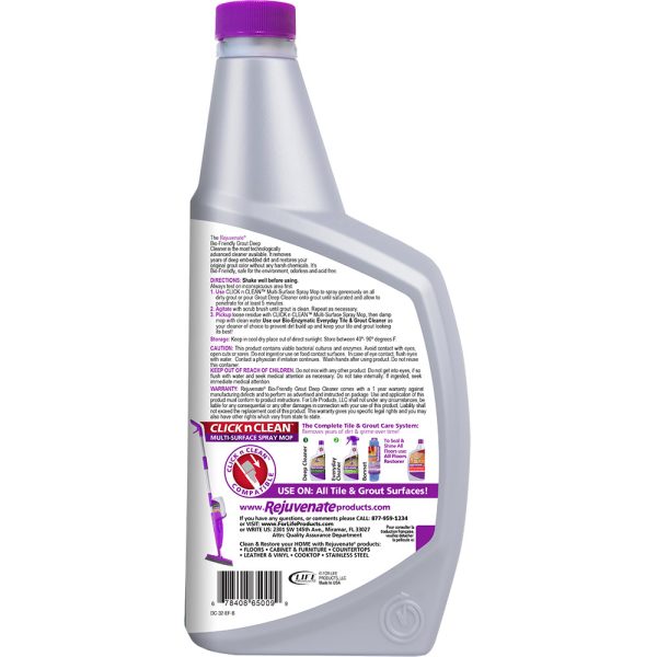 Le nettoyant en profondeur pour coulis est suffisamment puissant pour une utilisation commerciale, mais suffisamment doux pour être utilisé à la maison. Faites-vous plaisir et impressionnez vos visiteurs avec le nettoyeur en profondeur Rejuvenate facile à appliquer, qui nettoie en profondeur. Pour de meilleurs résultats en tant que détachant pour joints, éclaircissant à coulis et nettoyant pour carreaux, versez ou appliquez le nettoyant en profondeur pour coulis avec notre système de vadrouille Click n Clean Rejuvenate sur vos joints et laissez pénétrer pendant 2 à 3 minutes. Pendant ce temps, le nettoyeur bio-enzymatique travaille à éliminer la saleté et la crasse profondément incrustées dans les joints. Utilisez ensuite notre fine brosse en nylon pour coulis et agitez-la légèrement sur les lignes de joints.