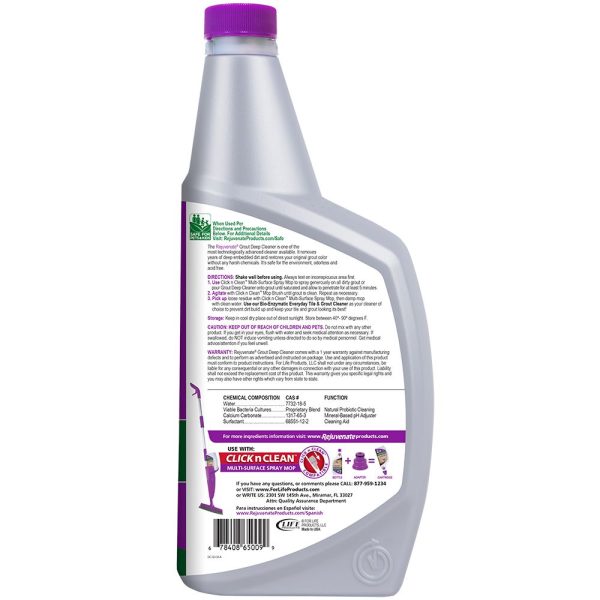 Then simply wipe off with a microfiber mop when you’re done or rinse the area with water. Step back and watch as your grout is transformed back to its original color. Look for a Click n Clean spray mop system that includes a grout brush for best results at a great value. From Rejuvenate – Reveal the Beauty and Make It New Again. Best in Class Products Made in the USA.